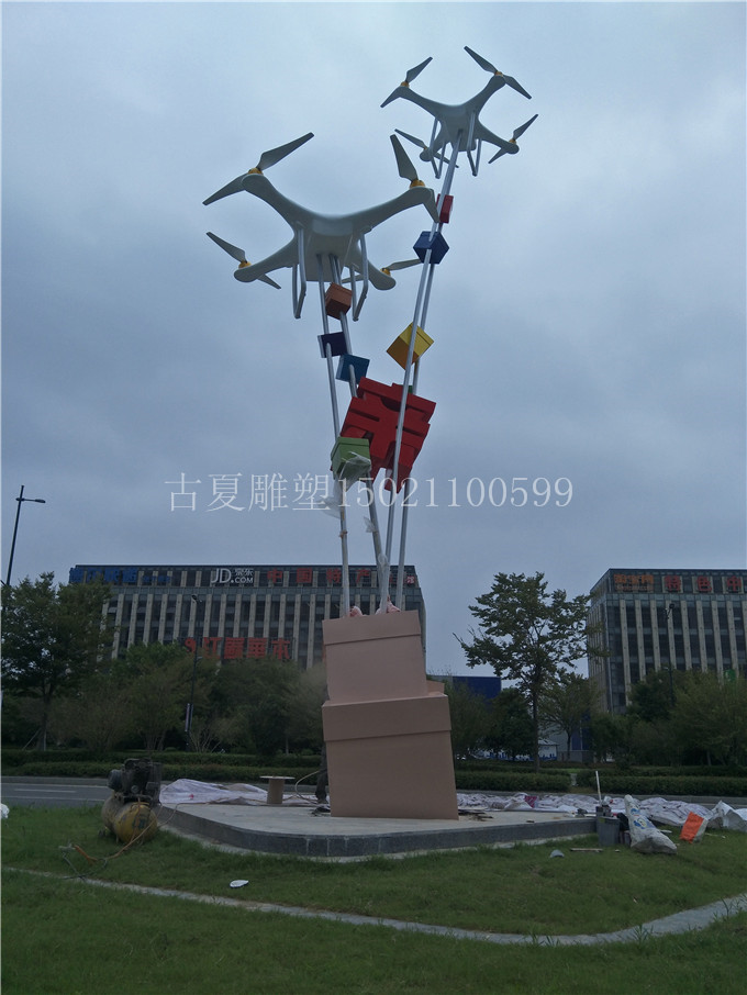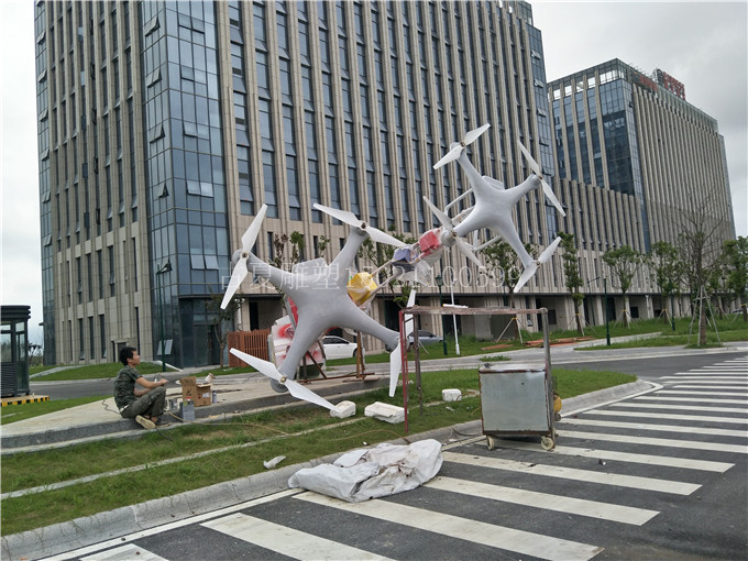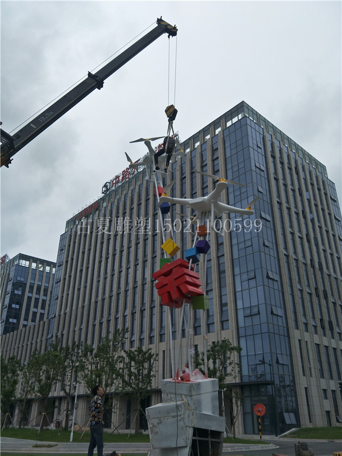 盐城电商快递产业园无人机不锈钢企业雕塑安装